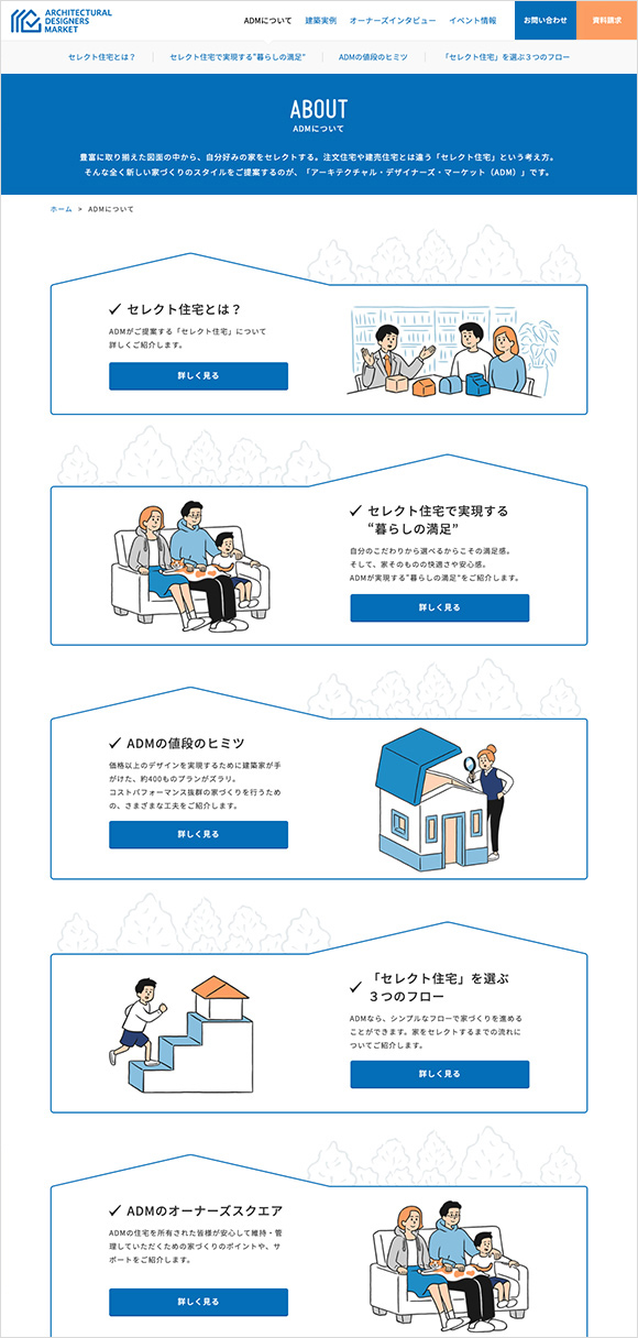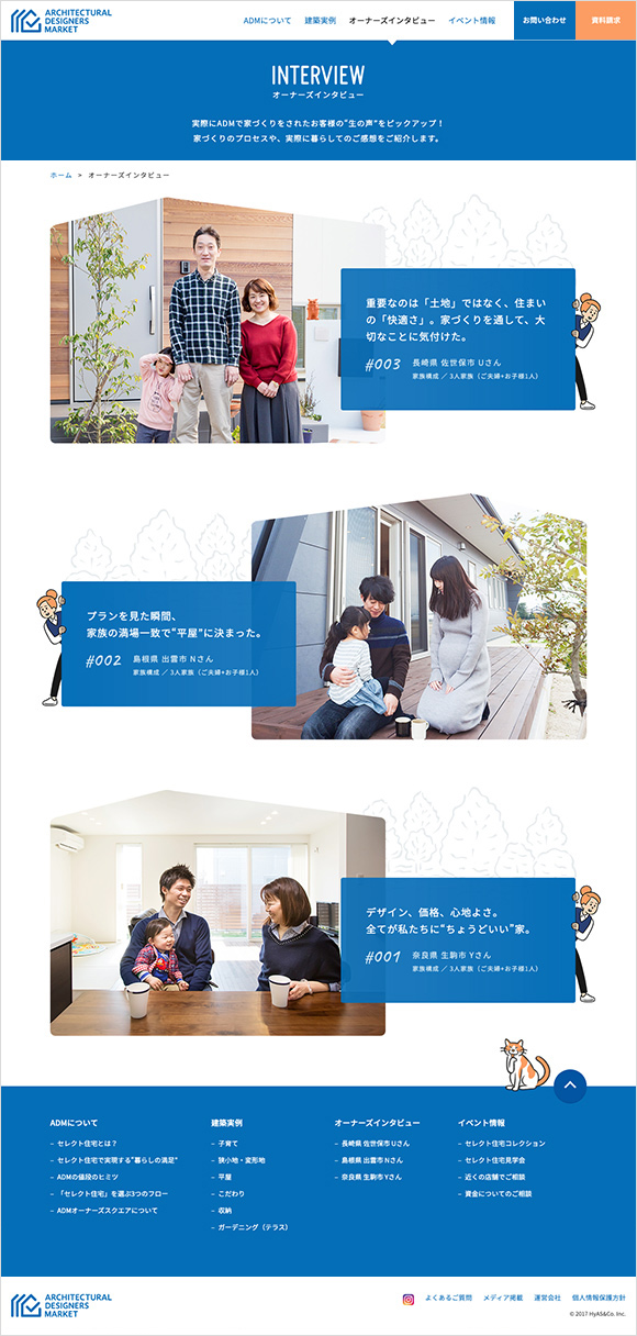 ハイアス・アンド・カンパニー株式会社の新サービス「ARCHITECTURAL DESIGNERS MARKET(アーキテクチャル・デザイナーズ・マーケット)」のブランドロゴ、コピー、カタログ、WEBサイト、ノベルティ、動画等の一連のブランディングを担当。新しい家づくりのスタイル「セレクト住宅」を紹介しています。